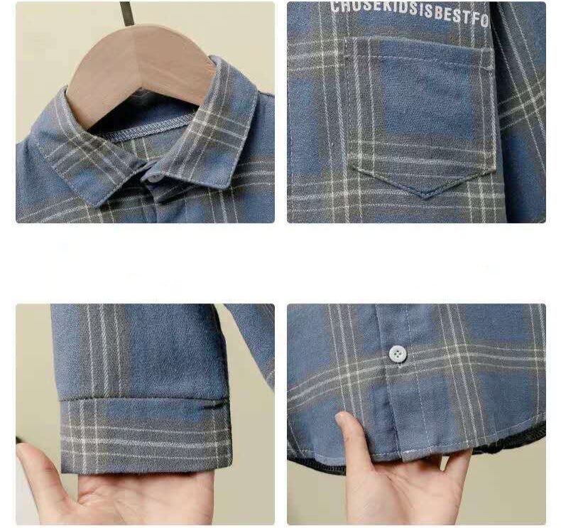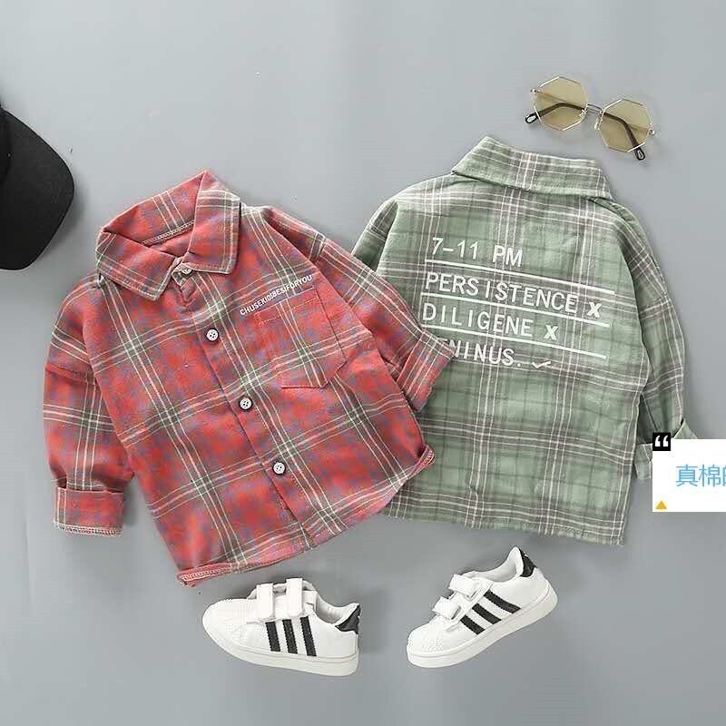 男の子用シャツ、春と秋、子供用チェック柄シャツ、子供服、おしゃれなベビー長袖コットントップス、薄手のジャケット、トレンド