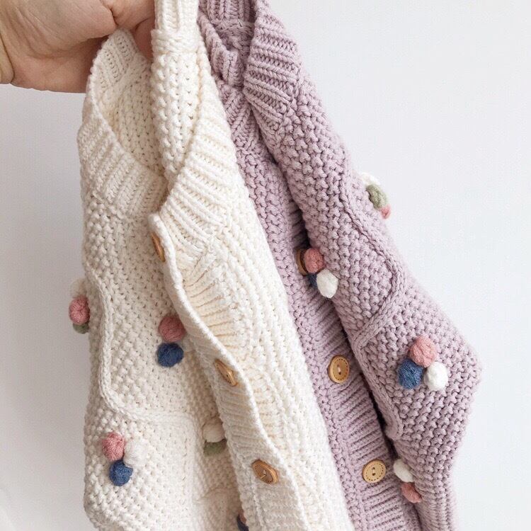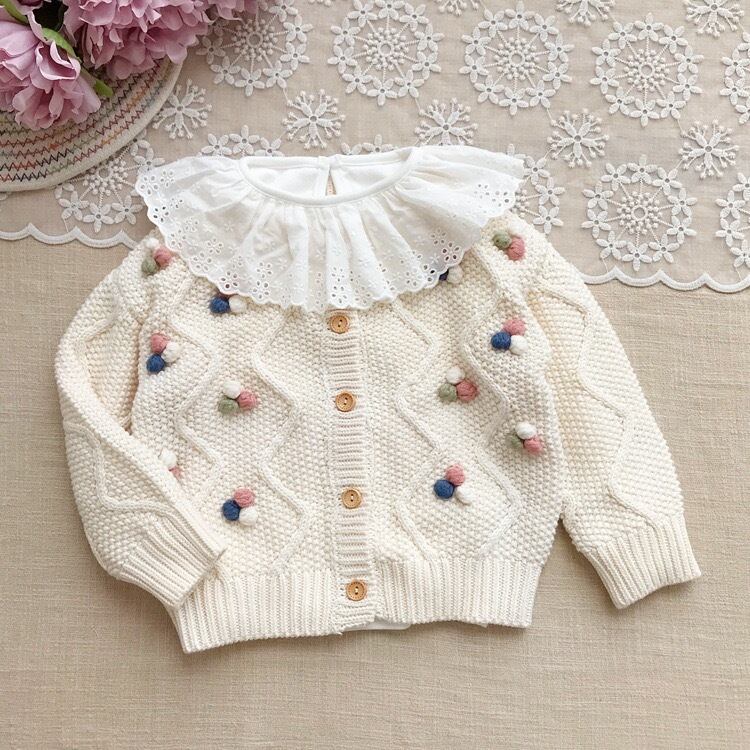 ニット カーデ 女の子 秋 冬 カーディガン キッズ ベビー かわいい ドット 韓国子供服 子供 韓国スタイル ラウンドネックセーター 紫 白 羽織り Kotoricot