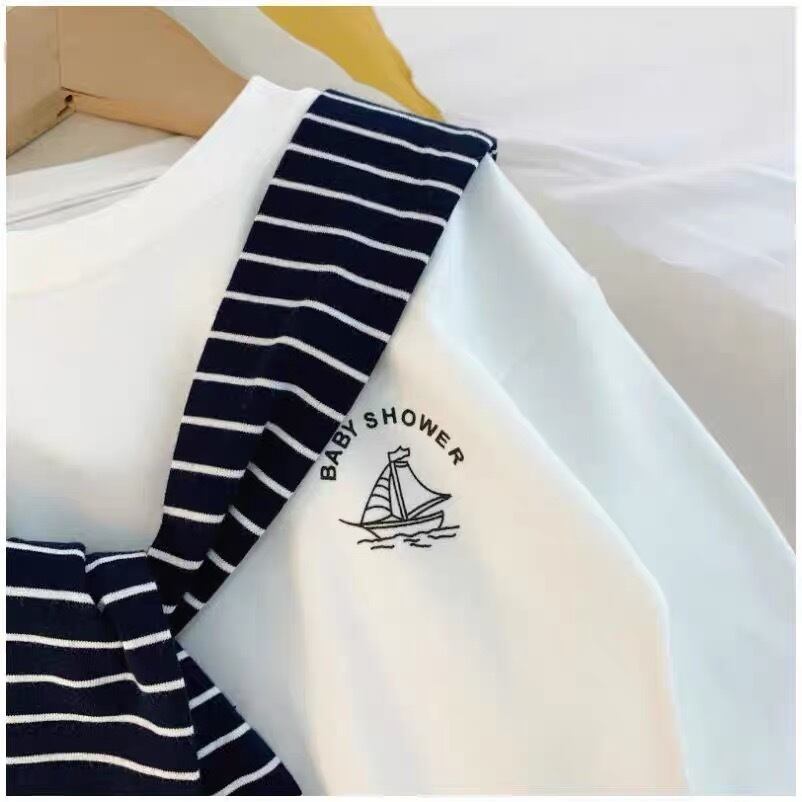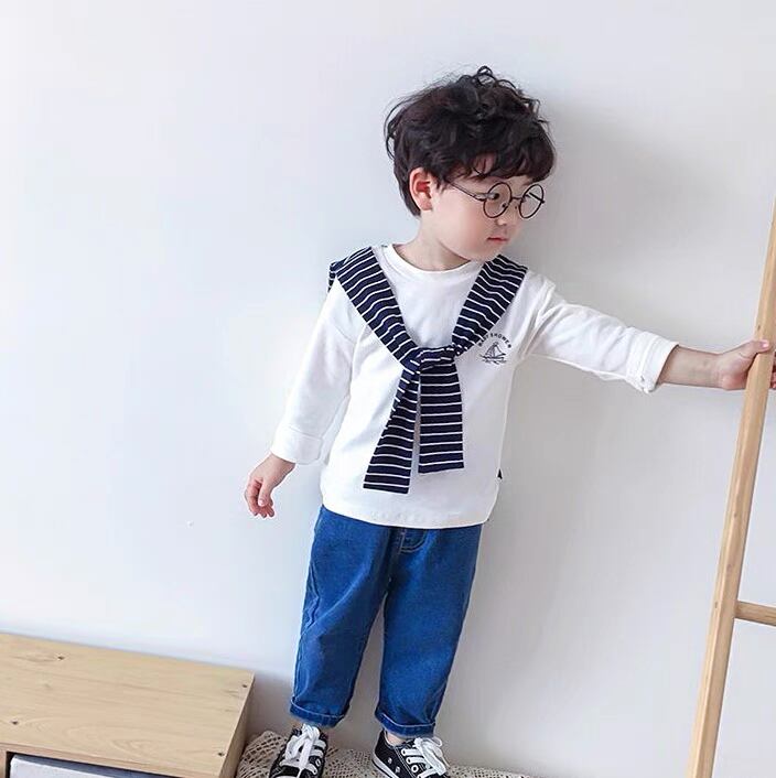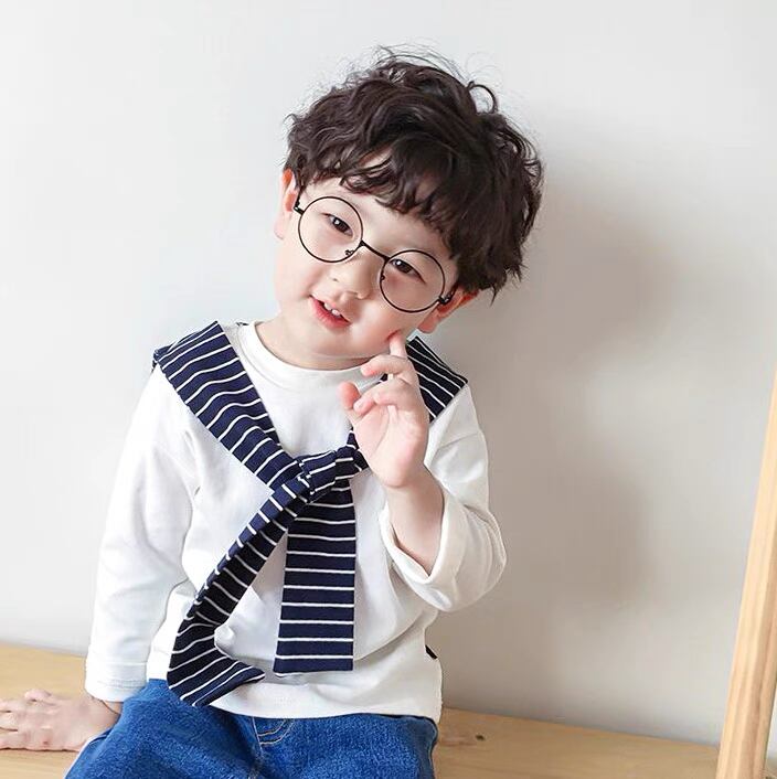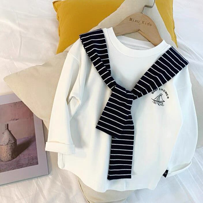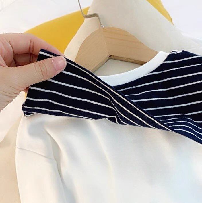 肩がけ風 秋 ストライプ トップス 子供服 Tシャツ 女の子 男の子 長袖 おしゃれ 韓国子供服 韓国スタイル Kotoricot