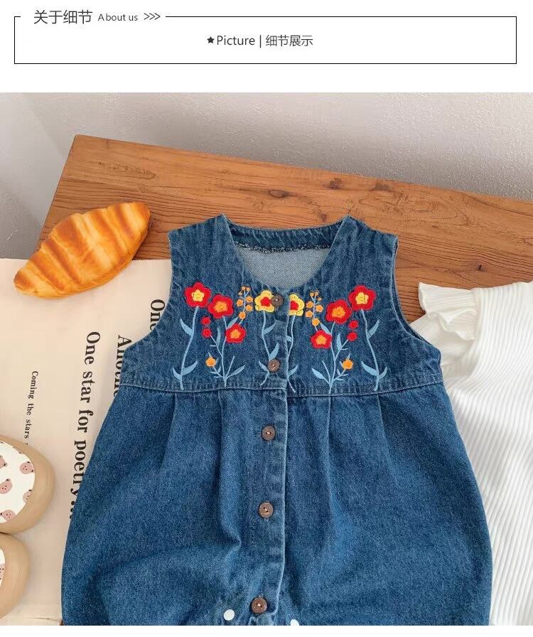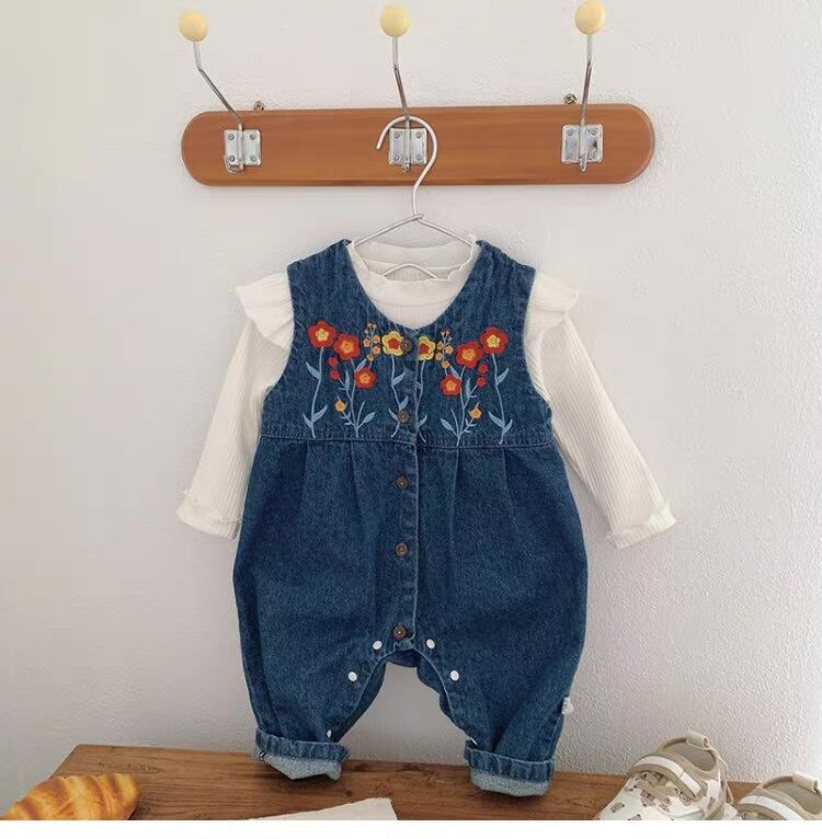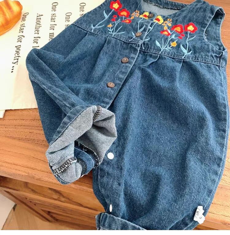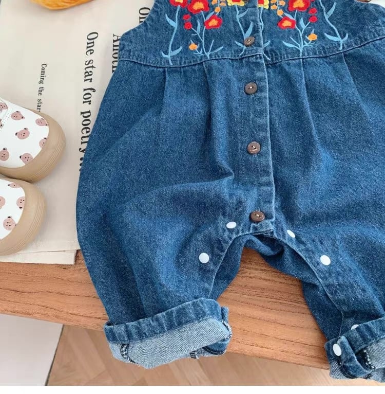 オーバーオール 花柄 刺繍 ノースリーブ デニム 0-2歳 女の子 赤ちゃん ロンパース 韓国子供服 韓国スタイル かわいい おしゃれ Kotoricot