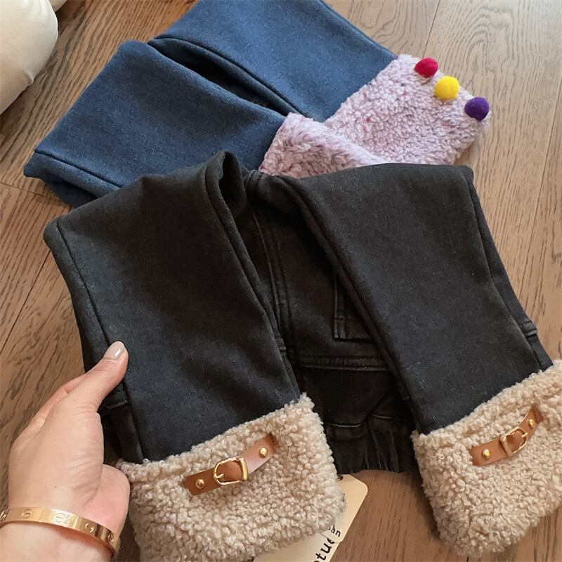 デニムパンツ 韓国スタイル 女の子 冬 ジーンズ パンツ 韓国子供服 暖かい 裏地 おしゃれ かわいい Kotoricot