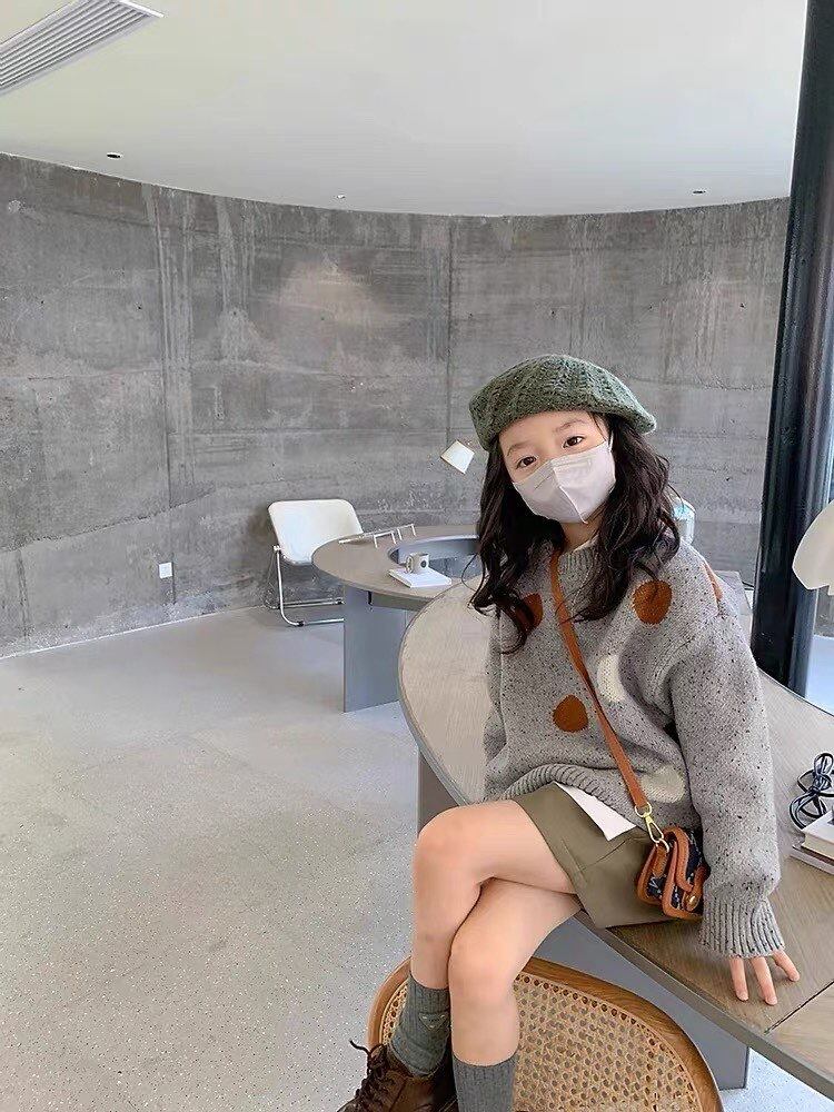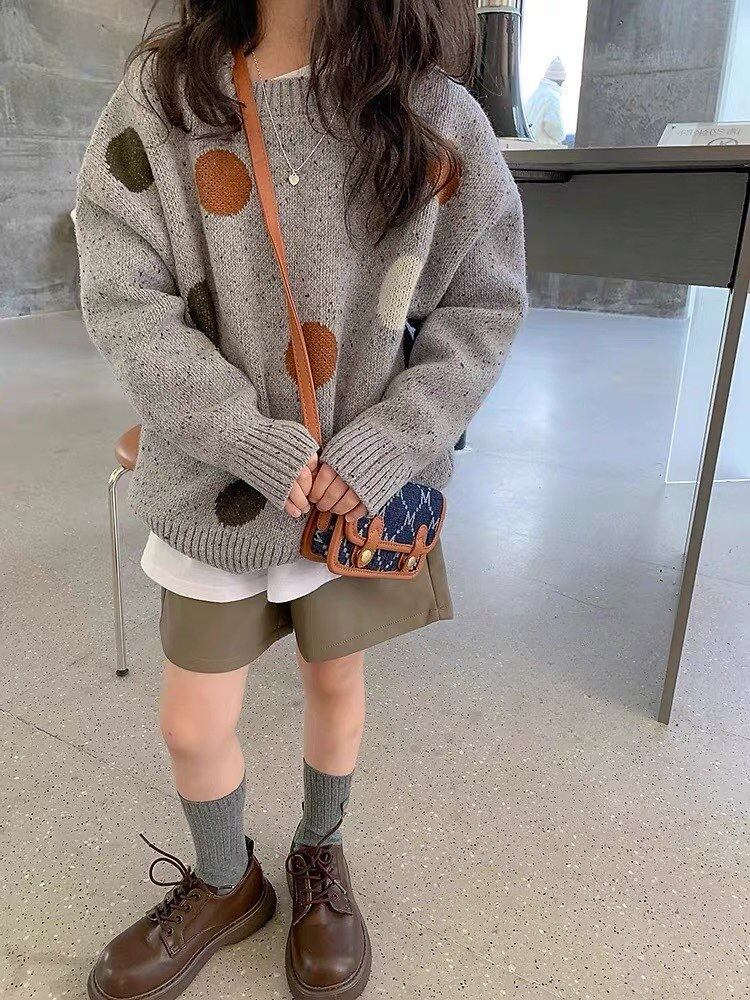 ニット 女の子 トップス コントラストカラー ラウンドネック ルーズセーター 韓国スタイル 子供 長袖 かわいい 韓国子供服 おしゃれ 水玉 ドット Kotoricot