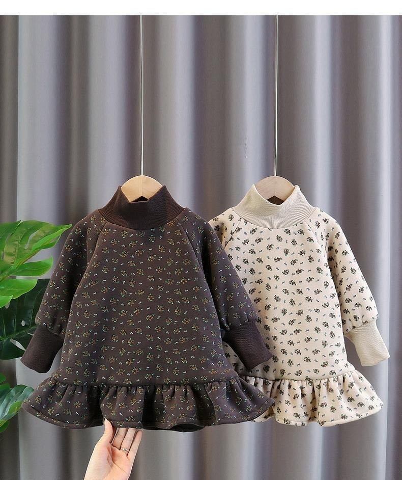 ワンピース 女の子 小花柄 秋 スウェット 韓国スタイル 冬