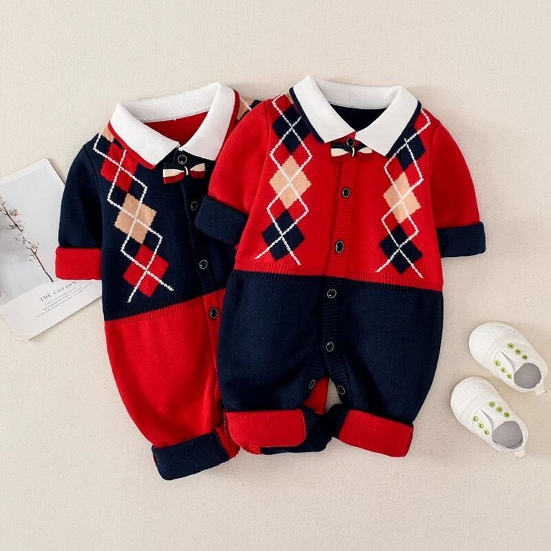 襟付き ニット カバーオール ベビー キッズ お出かけ用 ベビー服 男の子 ベビーセーター 新生児 ジャンプスーツ ニットセーター 韓国子供服 韓国スタイル おしゃれ かわいい Kotoricot