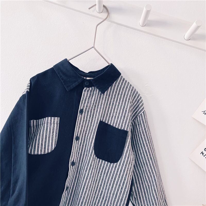 バイカラーストライプシャツ 子供服 ボーイズ 長袖 トップ ストライプシャツ シャツ 子供用 韓国子供服 韓国スタイル Kotoricot