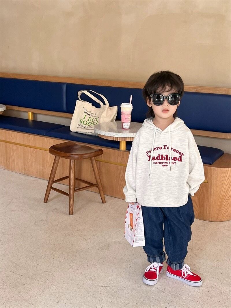 フード付き スウェット パーカー 子供 文字 刺繍 ユニセックス 男の子 女の子 ゆったり 長袖 トップス 韓国子供服 韓国スタイル Kotoricot